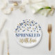 Sprinkled mit Liebe Baby Sprinkle Teller in dunkelblau und Gold Konfetti Muster.
