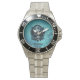 Dunkelblauer Schädel mit Rose. Armbanduhr