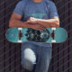 Dunkelblauer Schädel mit Rose. Beeindruckender, stylisierter Schädel in einem tiefen, reichen dunkelblauen, das an die Nacht erinnert. Die Umrisse des Schädels sind klar definiert und geben ihm eine geheimnisvolle Aura. Die Augenhöhlen sind tief schwarz und strahlen eine geheimnisvolle Intensität aus. Dieses Design vermittelt eine kraftvolle Botschaft von Leben und Tod, Schönheit und Vergänglichkeit