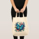 Dunkelblauer Schmetterling auf Blumendesign Tragetasche