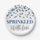 Sprinkled mit Liebe Baby Sprinkle Teller in dunkelblau und silber Konfetti Muster.