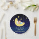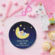 Lassen Sie die Babydusche mit diesem niedlichen und eleganten Teller im Thema von Twinkle Twinkle funkeln wenig Stern! Entwurf kommt mit einem entzückenden Baby, das blissfully auf dem sichelförmigen Mond schläft, während das Funkeln und das Funkeln aufgereiht herauf Sterne schön über dem kontrastierenden grauen Hintergrund glänzen. Text "Funkeln-Funkeln-kleiner Stern…" ist nicht editable. Personifizieren Sie am Namensfeld.