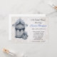Eine schöne Einladung mit dunkelblauem Vogelkäfig mit verzierter Schriftrolle und einem kleinen Vogel auf Elfenbeindamast. Dieses Design ist als Brautdusche-Einladung dargestellt und kann für viele verschiedene Veranstaltungen individuell gestaltet werden. Die Einladungen sind mit weißen Umschlägen und Ihrer Auswahl an Papier versehen.
