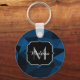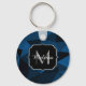 Dunkelblaues geometrisches Maschenmuster Monogram Schlüsselanhänger