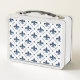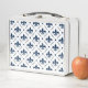Dunkelblaues Lilie-Muster auf weißem Hintergrund Metall Brotdose