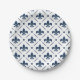 Dunkelblaues Lilie-Muster auf weißem Hintergrund Pappteller