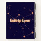 Dunkelblaues Notebook-Raumdesign-Notebook mit der Möglichkeit, Ihren eigenen Text zu setzen oder so einfach behalten, wie es "Wissen ist Power" ist.