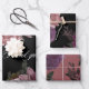 Dunkelbraunes, blumenschwarzes Brautparty Geschenkpapier Set
