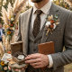 Reicher dunkelbrauner Schlips mit einem eleganten, sich wiederholenden Muster aus Eichenlaub und Eicheln in warmen goldbraunen Tönen. Das Design hat eine klassische, anspruchsvolle Damast-Optik — detailliert, aber nicht überwältigend. Es strahlt eine warme, zeitlose Atmosphäre aus, die großartig für Herbsthochzeiten, formelle Anlässe oder den täglichen Business-Look geeignet ist, wenn man etwas Interessanteres als einen einfarbigen Schlips tragen möchte.