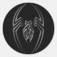 Ein Gusseisenspinnendesign mit scharfen Punkten und schlichten, stilvollen Linien. Dieses Metallarachnid hat vier Beine, die nach oben und vier nach unten reichen und ein aggressives, symmetrisches Muster erzeugen. Die dunkelsilberne Farbe der Spinne und der reine schwarze Hintergrund bilden einen auffallenden Kontrast auf diesem Aufkleber.