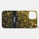 Personalisieren Sie Imitate funkelnd mädchenhafte iPhone Gehäuse mit Ihrem Initial und Namen. Schwarz-Weiß-elegantes Monogramm. Dunkelgoldgelbe Imitate Glitzer Glitzern. Schöne, gürtnisch dunkelgoldgelbe Glam Glitzer Glitzern. Bitte beachten Sie, dass wir Foto von Glitzern Glitzer verwenden!