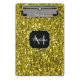 Dunkelgoldgelbe Imitate Glitzer Glitzern Monogram Mini Klemmbrett