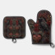 Dunkelgotische Beauty-Rote Rosen Black Crow Raven Ofenhandschuh & Topflappen-Set