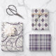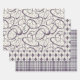 Diese Zusammenstellung von Packpapierblättern weist drei unterschiedliche Muster mit einem grauen, lila und grauen Farbmotiv auf: funky miteinander verflochtene Schleifenmuster, Raute und kariertes Muster - von katz_d_zynes