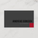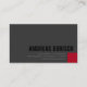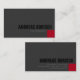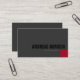 Berufliche Benutzerdefinierte dunkelgraue Visitenkarte mit schwarzem Namenstext und leichterem grauem Text für andere Informationen. Zweiseitiger Druck, bei dem die Hintergrundfarbe verändert werden kann. Auf der rechten unteren Ecke befindet sich ein rotes Quadrat, das sich auf der Rückseite wiederholt. Unten sind weitere Variationen dieses Designs.