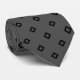 Diese klassische Krawatte zeichnet sich durch ein schwarzes Rautenmuster in Abständen auf einem dunkelgrauen Hintergrund aus.