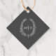 Dunkelgraue, weiße Blätter, ovale Kranz-Monogramm- Geschenkanhänger