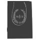 Dunkelgraue, weiße Blätter, ovale Kranz-Monogramm- Mittlere Geschenktüte