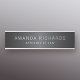 Türzeichen mit Namen und Titel auf dunkelgrauem Farbverlauf