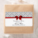 Dunkelgraues weißes Damaskochetikett mit rotem Bow