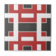 Moderne Keramik Fliesen mit geometrischen Formen in dunkelgrau, rot und weiß.