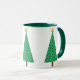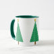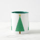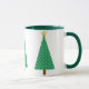 Tasse in einem vereinfachten modernen Nehmen an einem klassischen Weihnachtsbaummotiv, in einem dunkelgrünen arabischen Muster