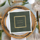 Moderne klassische dunkle Smaragdgrün und goldene trendige minimalistische Typografie maßgeschneiderte Hochzeitspapier-Servietten auf einem Vintag bedrückten Hintergrund mit Rahmen.
