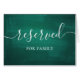 Dunkelgrüne Hochzeit vorbehalten Schild. Script sm