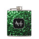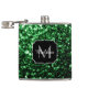 Dunkelgrüne Imitate Glitzer Glitzern Monogram Flachmann