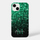 Dunkelgrüne Imitate Glitzer Glitzern Monogram iPhone Hülle