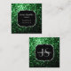 Dunkelgrüne Imitate Glitzer Glitzern Monogram Quadratische Visitenkarte
