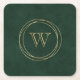 Dunkelgrüne Imitate Leder-Gold-Circles Monogram Rechteckiger Pappuntersetzer