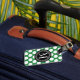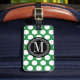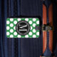 Dunkelgrüne u. schwarze große Polka-Punkte mit Gepäckanhänger