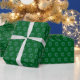 Weihnachtsgrün Geschenkpackung mit einem farbenfrohen Kranz wiederholt Design. Einfach schön.