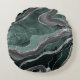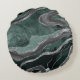 Dunkelgrüner schwarzer Marmor Agate Silver Glitzer Rundes Kissen