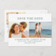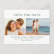 Zwei Fotos und vier Textzeilen auf der Vorderseite lasse Ihnen, Ihre einzigartige Save the Date Postkarte schnell und einfach zu entwerfen. Ein drittes Foto wird auf der Postkarte zusammen mit mehr Text zum Anpassen gelegt.