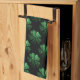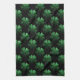 Dunkelgrünes funkelnd Kleeblatt auf schwarz Geschirrtuch