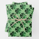 Dunkelgrünes funkelnd Kleeblatt-Muster auf Salbei Geschenkpapier Set