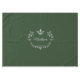 Elegantes, dunkelgrünes Tischdecken mit einer silberfarbenen blühtest- und Krontextgrafik und Sondertext. Stellen Sie sich den Text dieser schönen Ergänzung Ihres Esstisches vor.