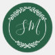 Dunkelgrünes weißes Leaf-Kränz-Monogramm-Hochzeit Runder Aufkleber