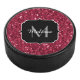 Dunkelrosa Magenta-Imitate Glitzern Monogramm Eishockey Puck
