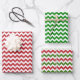 Dunkelrot, Grün und Weiß Zickzack Geschenkpapier Set
