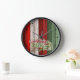 Dunkelrot-grünes Weathered-Holzplanken-Muster Uhr