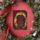 Elegante Hochzeitseinladungen mit botanischen Details. Goldene Rose, Blätter und Sprigs bilden den Rahmen für Ihre Zeremonie. Namen und Blumenakzente sind in echter metallischer Folie dargestellt. Gold auf einem maronen roten Hintergrund.