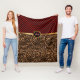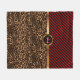Dunkelrot und Leopard-Tierdruck in Monogramm Fleecedecke