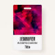 Ein Namensschild mit coolem abstraktem Hintergrund. Dunkelrote und lila Pinselstriche schaffen ein kühnes, modernes, lebendiges Design.