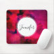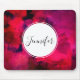 Ein Mousepad mit coolem abstraktem Hintergrund. Dunkelrote und lila Pinselstriche schaffen ein kühnes, modernes, lebendiges Design. Ein Kreis überlagert mit einem personalisierten Text innen.