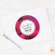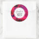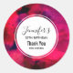 Geburtstag / Veranstaltung danke Ihnen Aufkleber mit einem coolen abstrakten Hintergrund. Dunkelrote und lila Pinselstriche schaffen ein kühnes, modernes, lebendiges Design. Ein Kreis überlagert mit einem personalisierten Namen/Text innen.