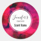 Kerzen oder Seifenaufkleber mit coolem abstraktem Hintergrund. Dunkelrote und lila Pinselstriche schaffen ein kühnes, modernes, lebendiges Design. Ein Kreis überlagert mit einem personalisierten Namen/Text innen.