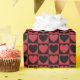 Ein Verpackungspapier mit dunkelroten und schwarzen karierten Mustern und Herzen. Passen Sie die schwarze Hintergrundfarbe unter mehreren Optionen an.